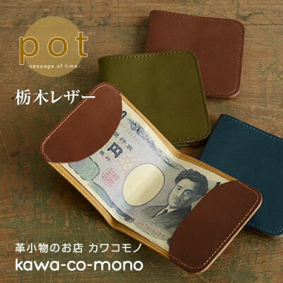 財布 メンズ 二つ折り 薄い マネークリップ お札入れ 札ばさみ 栃木レザー 日本製 レディース 送料無料 名入れ 刻印 プレゼント pot ポット