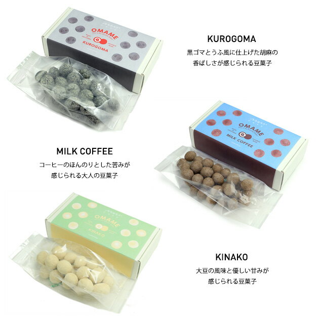 商品名 MAM CAFE / MAM OMAME 〈広島県産〉 商品説明 豆の香ばしい風味とカリッとした歯ごたえはそのままに、豆に生地をまいて煎り上げ、バリエーション豊かに仕上げました。
