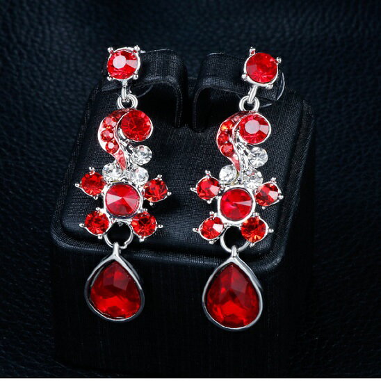【メール便送料無料!】カラービジュー ラインストーンネックレス&ピアスセット (レッド×シルバー)【結婚式 パーティー 披露宴 フォーマル お呼ばれ 二次会 謝恩会 演奏会 発表会 ドレス ボレロ 衣装】【ネックレス チョーカー パーティーアクセサリー】