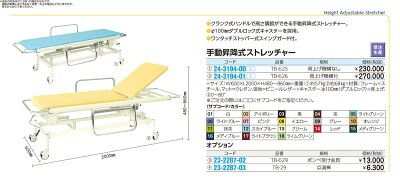 【病院専用商品】手動昇降式ストレッチャー100 TB-625(60X200X48-86)品番 24-3194-00091入り 医療機器対象外 病棟 搬送 定価\230000 JAN ●定価¥230,000円(税別)●商品説明●クランク式ハンドルで高さ調節ができる手動昇降式ストレッチャー。