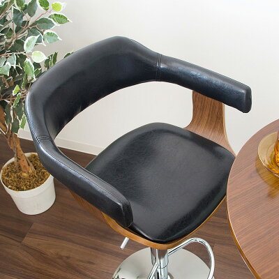 身体を包み込むような曲線フォルム、くつろげる肘掛け、高級感のあるバイキャスト加工の張地が特徴のレザーバーチェア 木目が美しい天然木突板を使用した曲げ木フレームに、クッション性のある肌触りの良い合成皮革を背もたれと座面に配したバーチェアは座り心地もバツグン♪